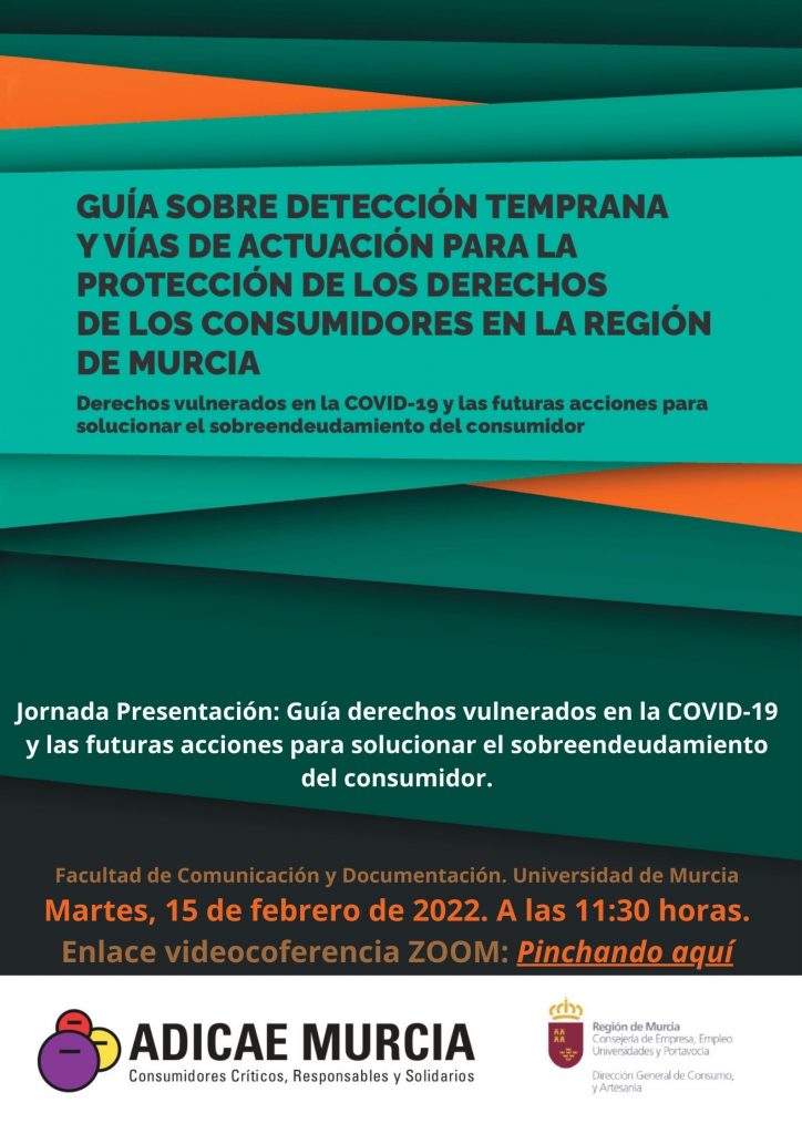 Este próximo 15 de febrero de 2022 a las 11.30horas, la abogada D.ª Rosa Mª Vigueras Abellán presentará la «Guia: derechos vulnerados en la COVID-19 y las futuras acciones para solucionar el sobreendeudamiento del consumidor» en la Facultad de Comunicación y Documentación de la Universidad de Murcia. Esta guía ha sido elaborada por la Sra. […]